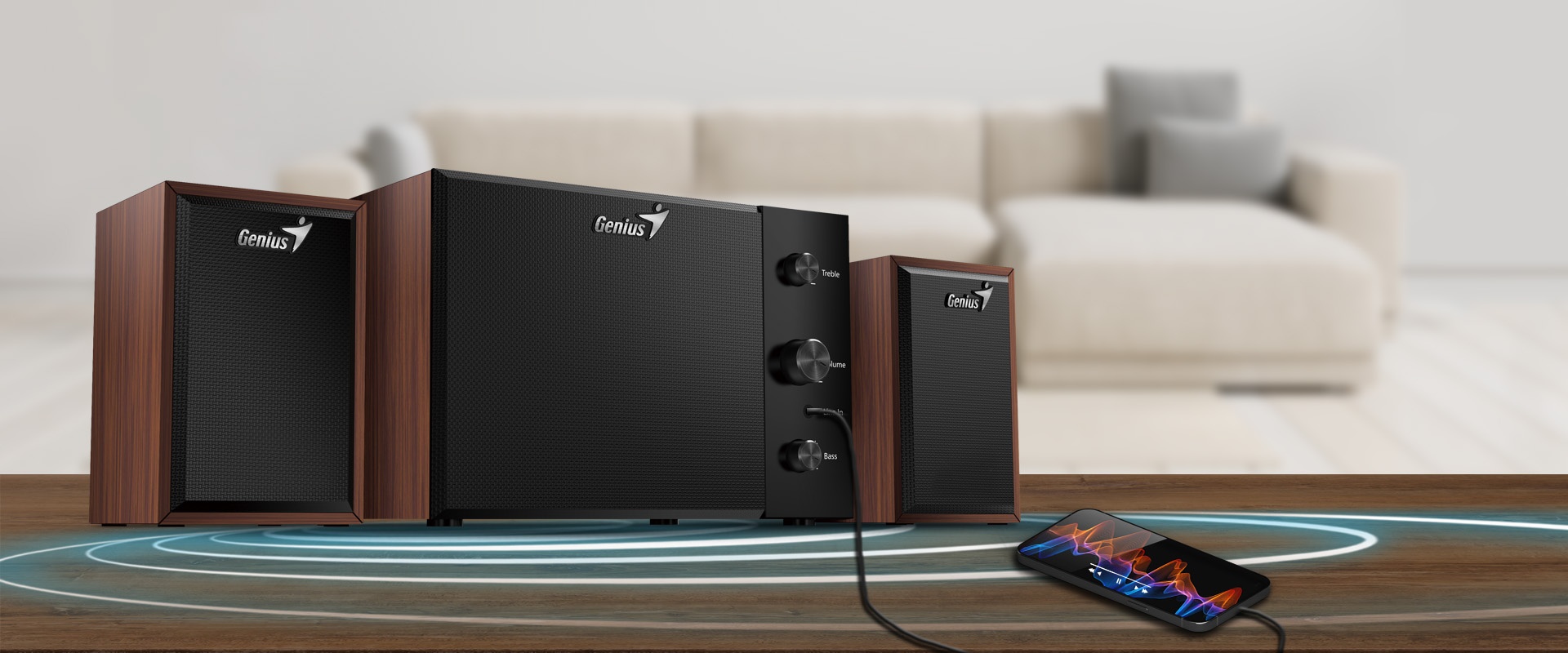 Material: Madera y plasticoAlimentacion: 100 V - 240 VEntrada: 3.5 mmPotencia de salida: 15W (Subwoofer: 8 W / Satélites: 3,5 W x2)Control de volumenLargo del cable: 1.5 MMedidas: 216 x 145 x 158 mmPeso: 1253gr (subwoofer) - 662gr (2 satelites)