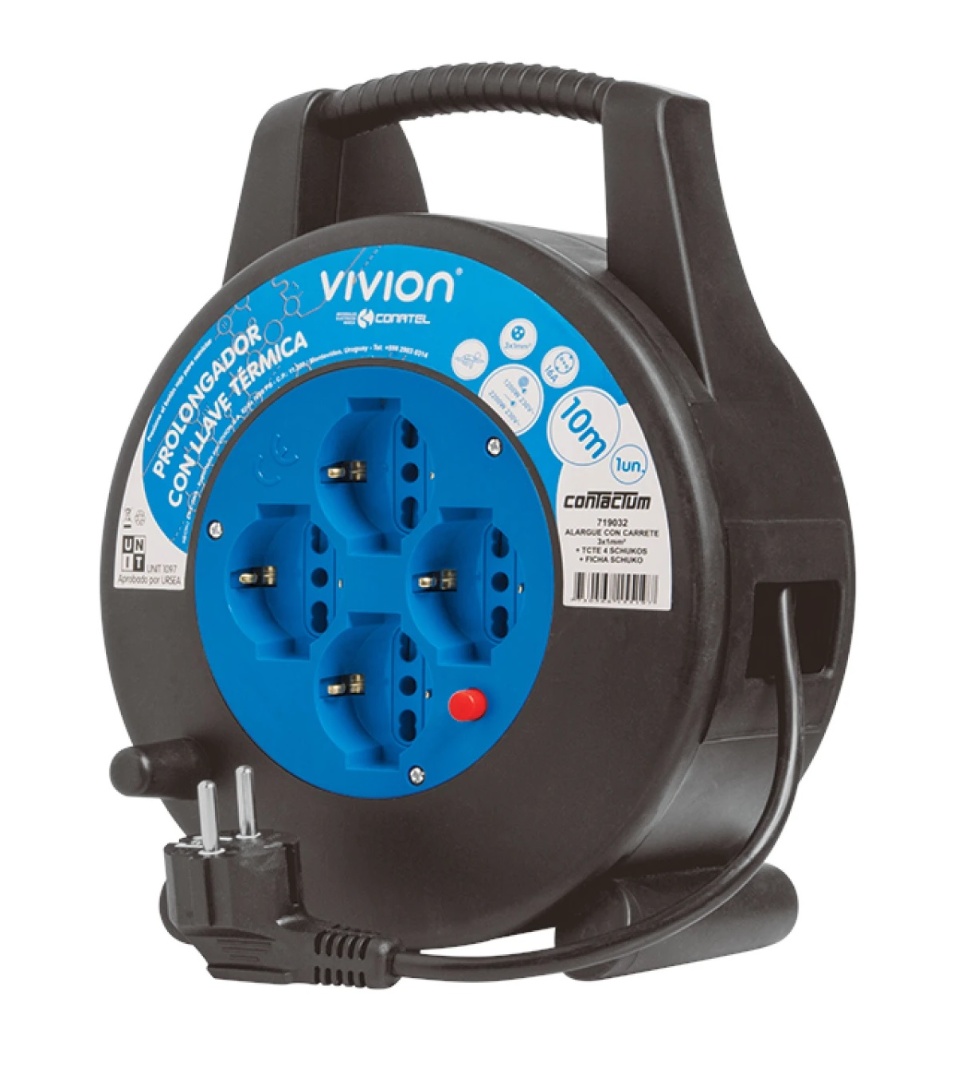 Alargue carrete 20 metros 4xSchuko a ficha Schuko Conatel